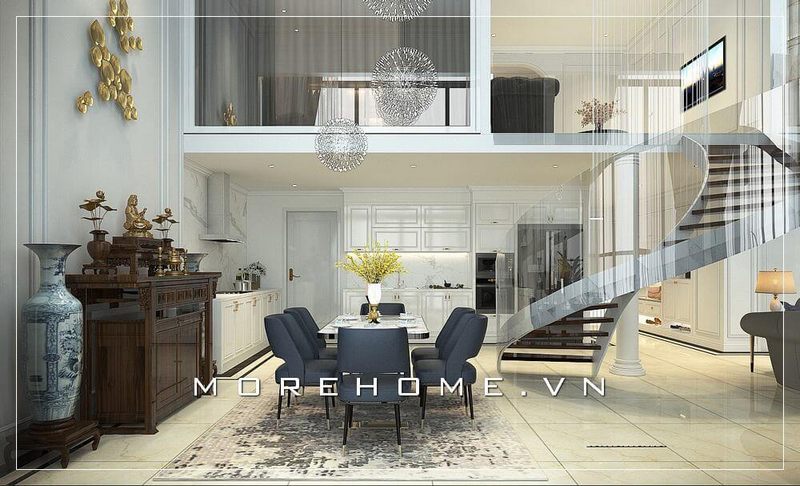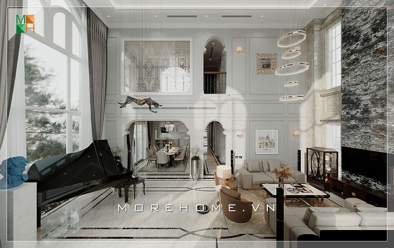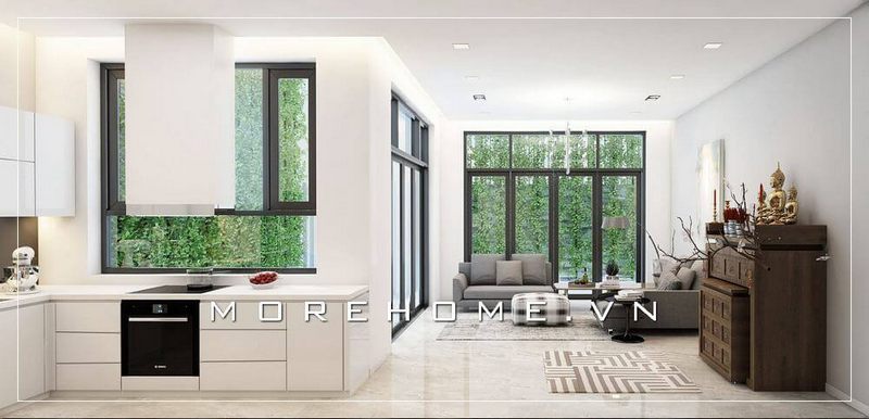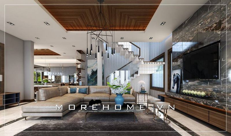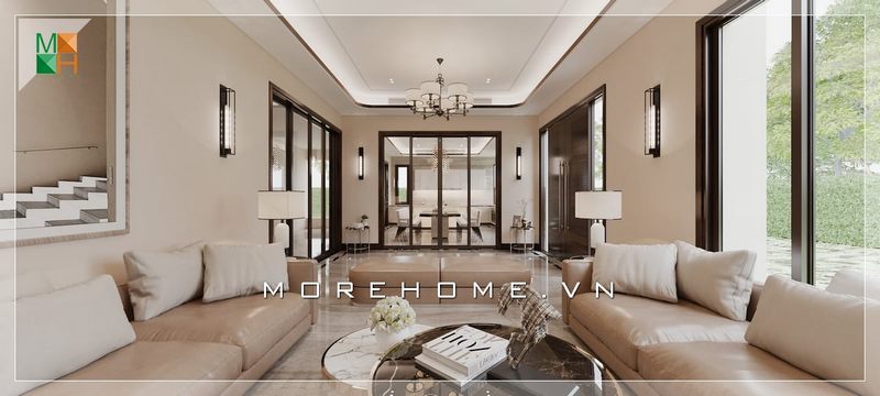 Thiết kế nội thất biệt thự theo xu hướng mở đầy sang trọng, thoáng đãng, không gian sinh hoạt chung được bố trí liền kề mang đến sự tiện nghi nhất cho gia chủ