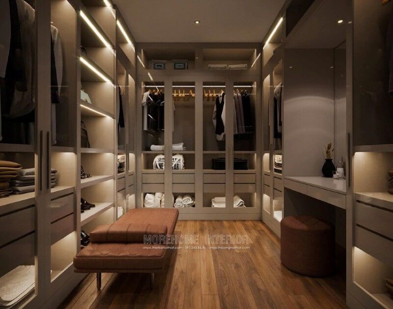 Thiết kế nội thất phòng thay đồ hiện đại rất tiện nghi cho chung cư, nhà phố, biệt thự.