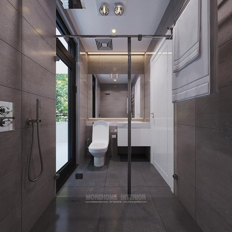 Phòng tắm của nhà phố được trang trí nội thất theo phong cách hiện đại, giúp cung cấp sự tiện nghi cho việc sống hàng ngày.