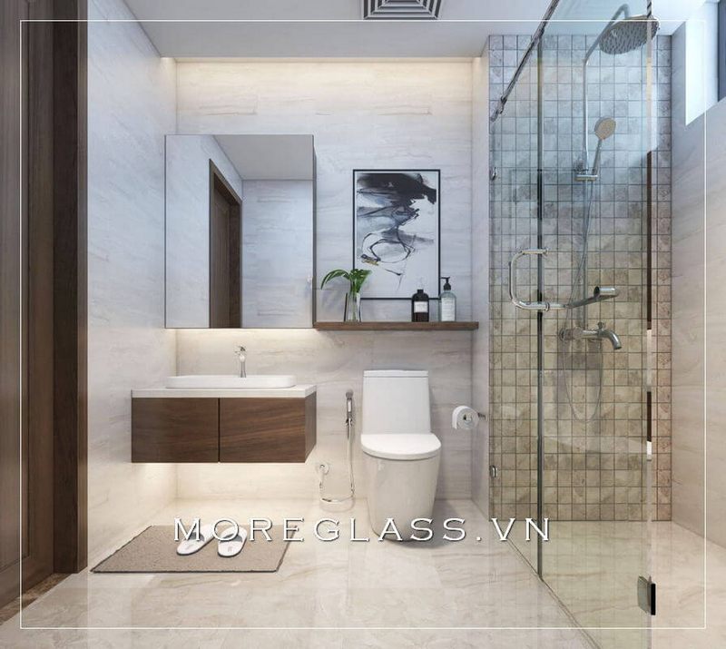 Khi nhìn vào nhà vệ sinh đẹp ta sẽ thấy sự sạch sẽ và thoáng mát nhờ gam màu trắng tươi sáng với đầy đủ tiện nghi
