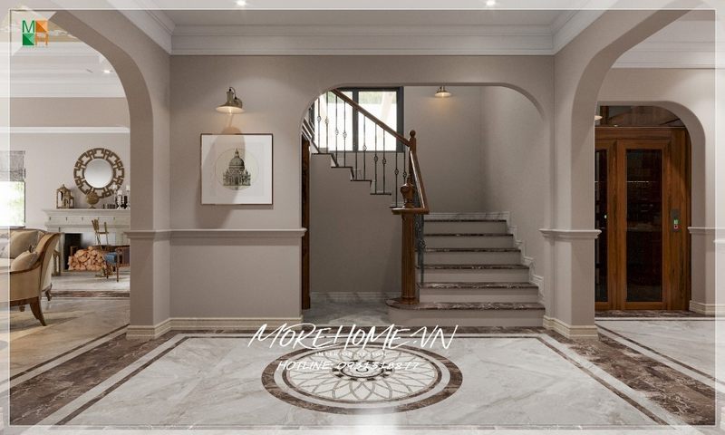 Mẫu thiết kế sảnh chung tầng 1 cho công trình biệt thự phong cách đương đại