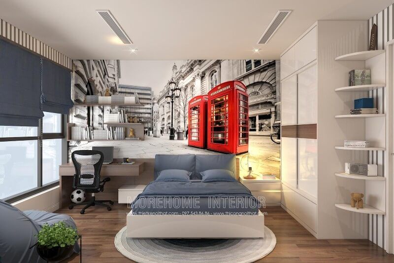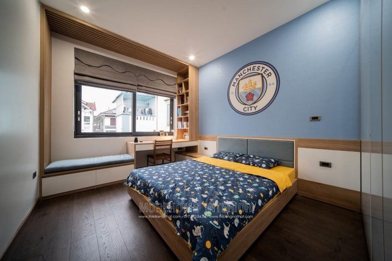 . Không gian phòng ngủ có xu hướng phóng khoáng Địa Trung Hải sẽ làm cho bé trai cảm thấy vui vẻ khi bước vào phòng.